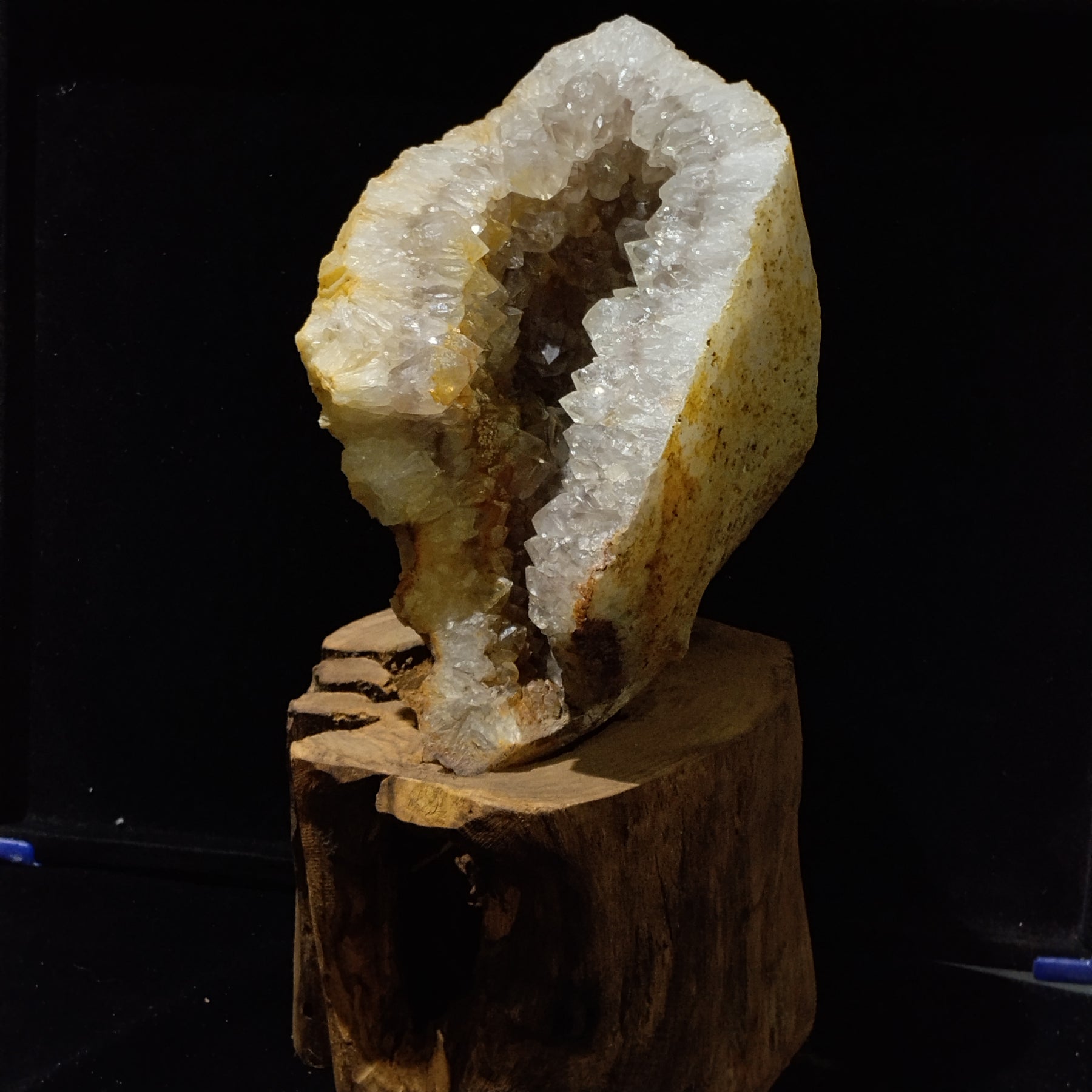 AuraShell – a protective and radiant energy vessel (Crystal Geode on Handcrafted Wooden Stand )