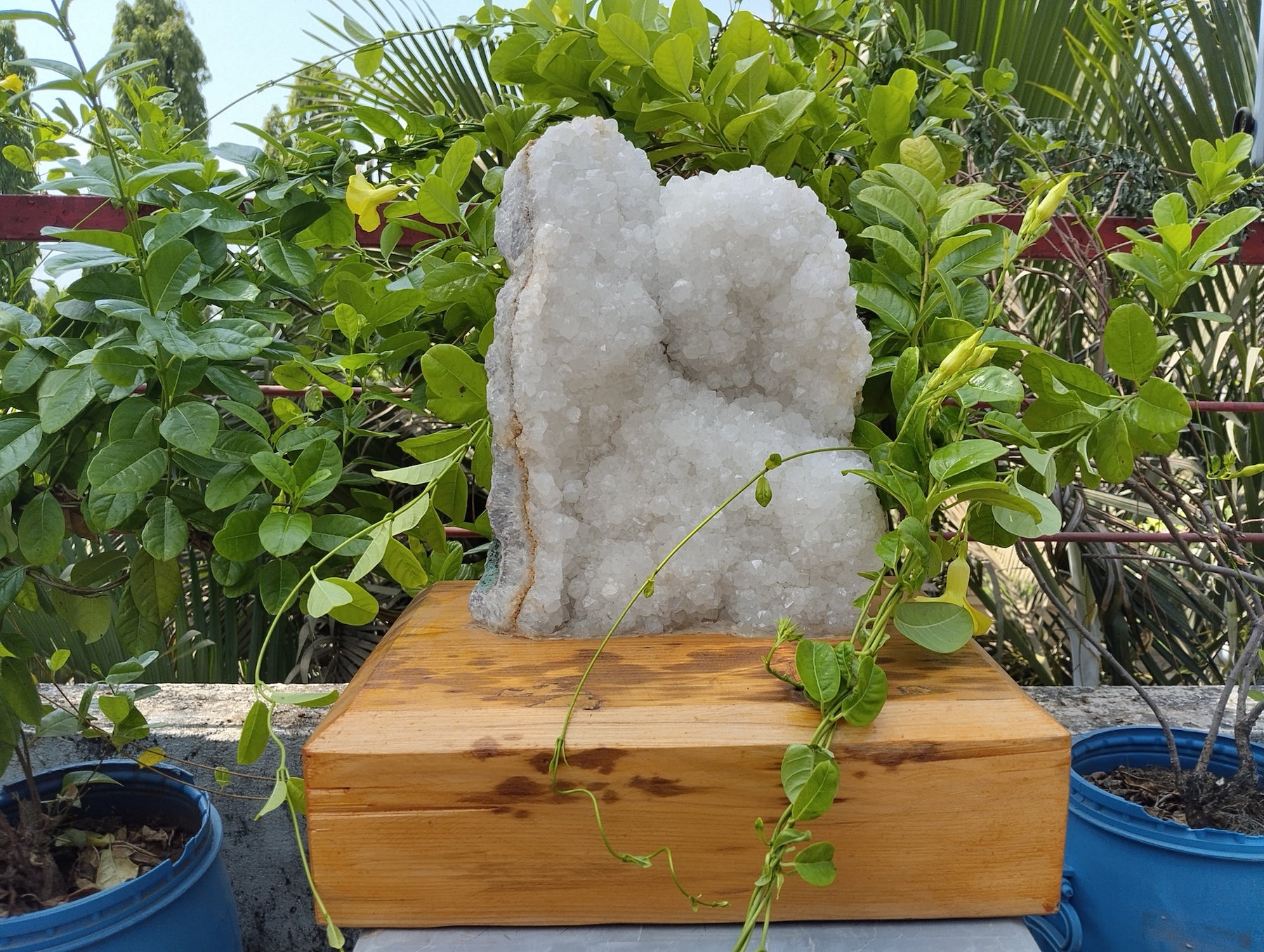 Apophyllite is known for its high-vibrational energy that enhances clarity, intuition, and emotional healing, while Quartz amplifies positivity and purifies the surroundings. Together, they create a powerful synergy of peace, protection, and balance, making this crystal formation an ideal choice for spiritual practitioners, collectors, and interior décor enthusiasts.