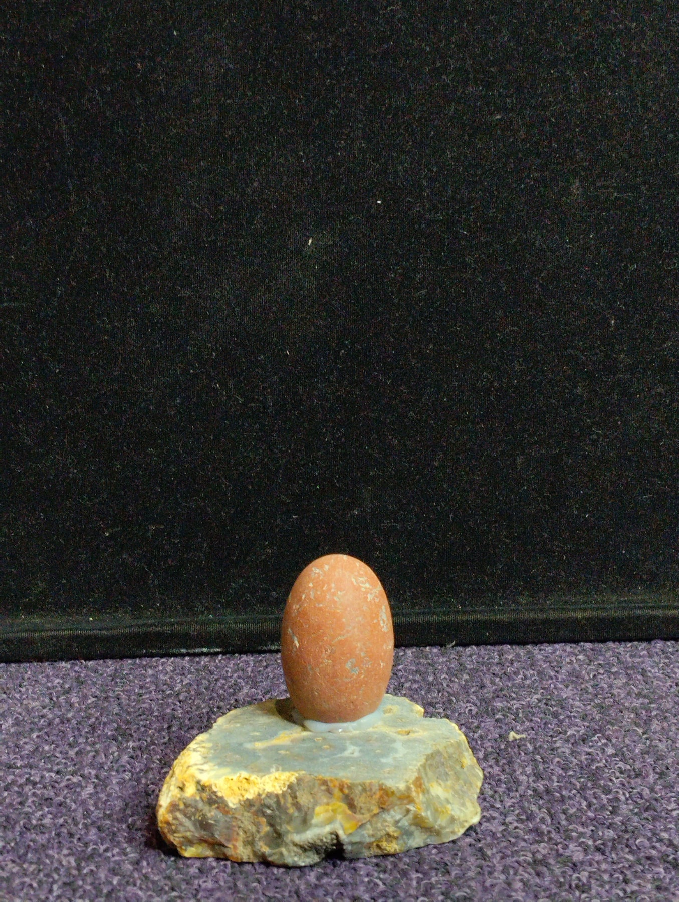 Embrace the grounding energy of nature with the Earthborn Essence, a striking fusion of polished elegance and raw texture. This artisanal creation features a finely smoothed jasper egg in warm reddish-brown hues—rich with speckled patterns—nestled atop a rugged slab of multi-toned crystal stone. Together, they form a symbolic union of refinement and primal strength.