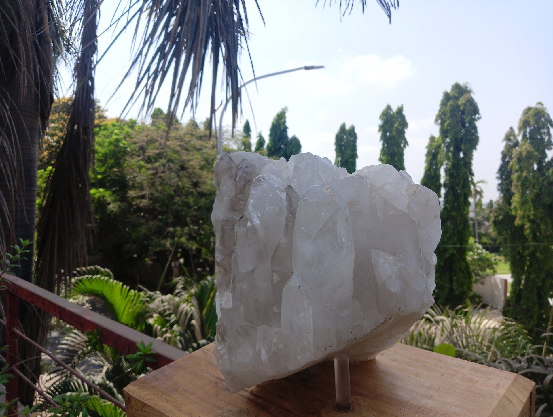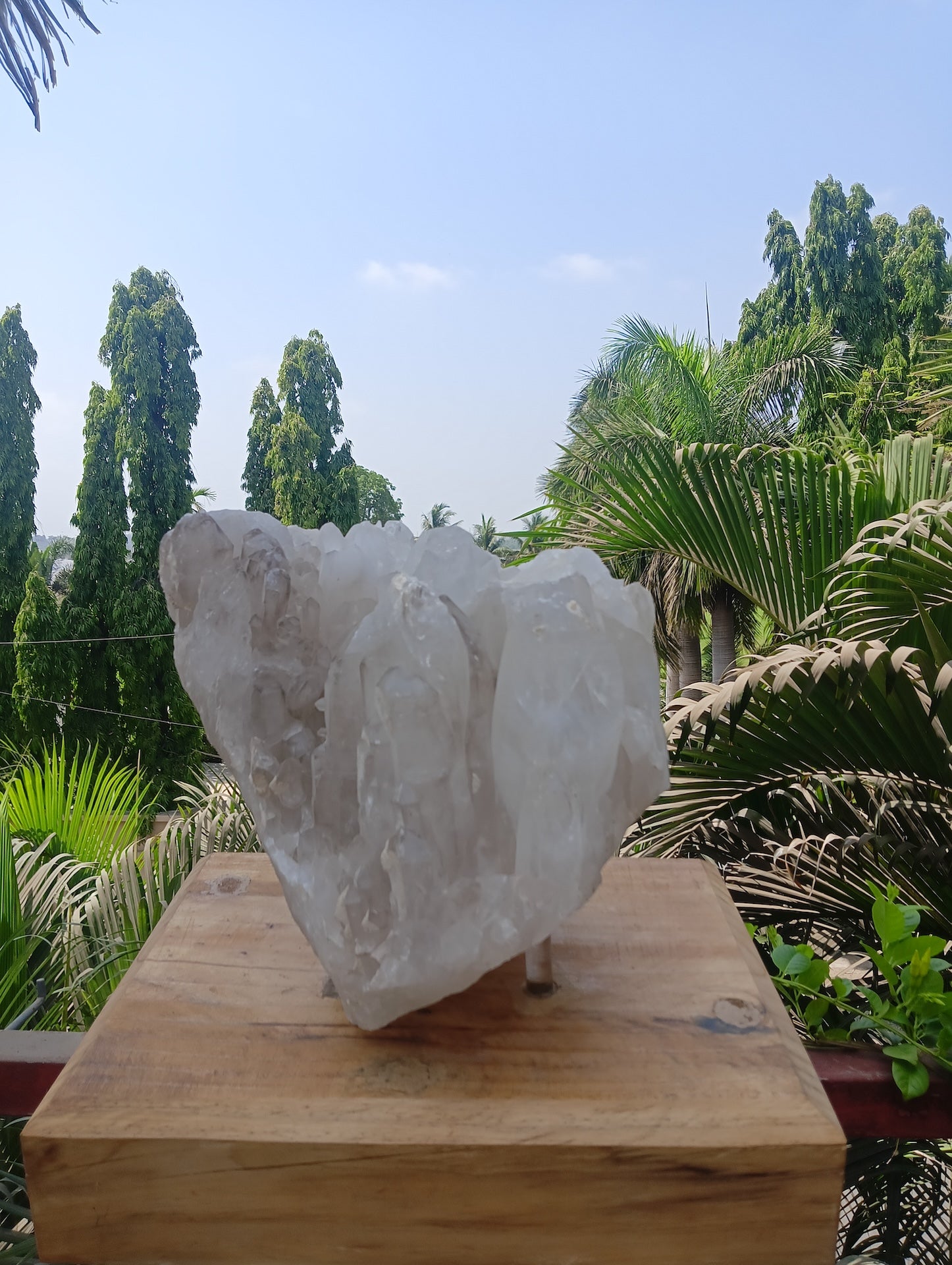 Known as the “Master Healer”, Clear Quartz is celebrated for its powerful healing and energy-enhancing properties. It is believed to harmonize the mind, body, and spirit while amplifying positive energies in any space. The unique Ice Mount shape adds to its natural allure, making it a perfect centerpiece for collectors, meditation enthusiasts, and interior decor connoisseurs.