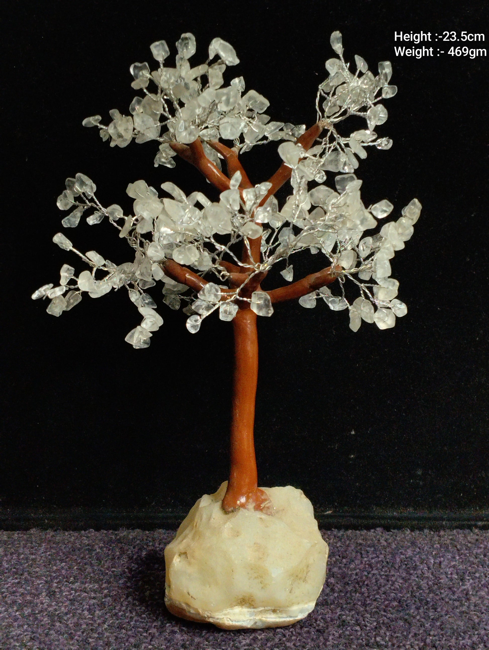 Material: Genuine Clear Quartz crystal chips, silver wire branches, resin trunk, and natural-style base