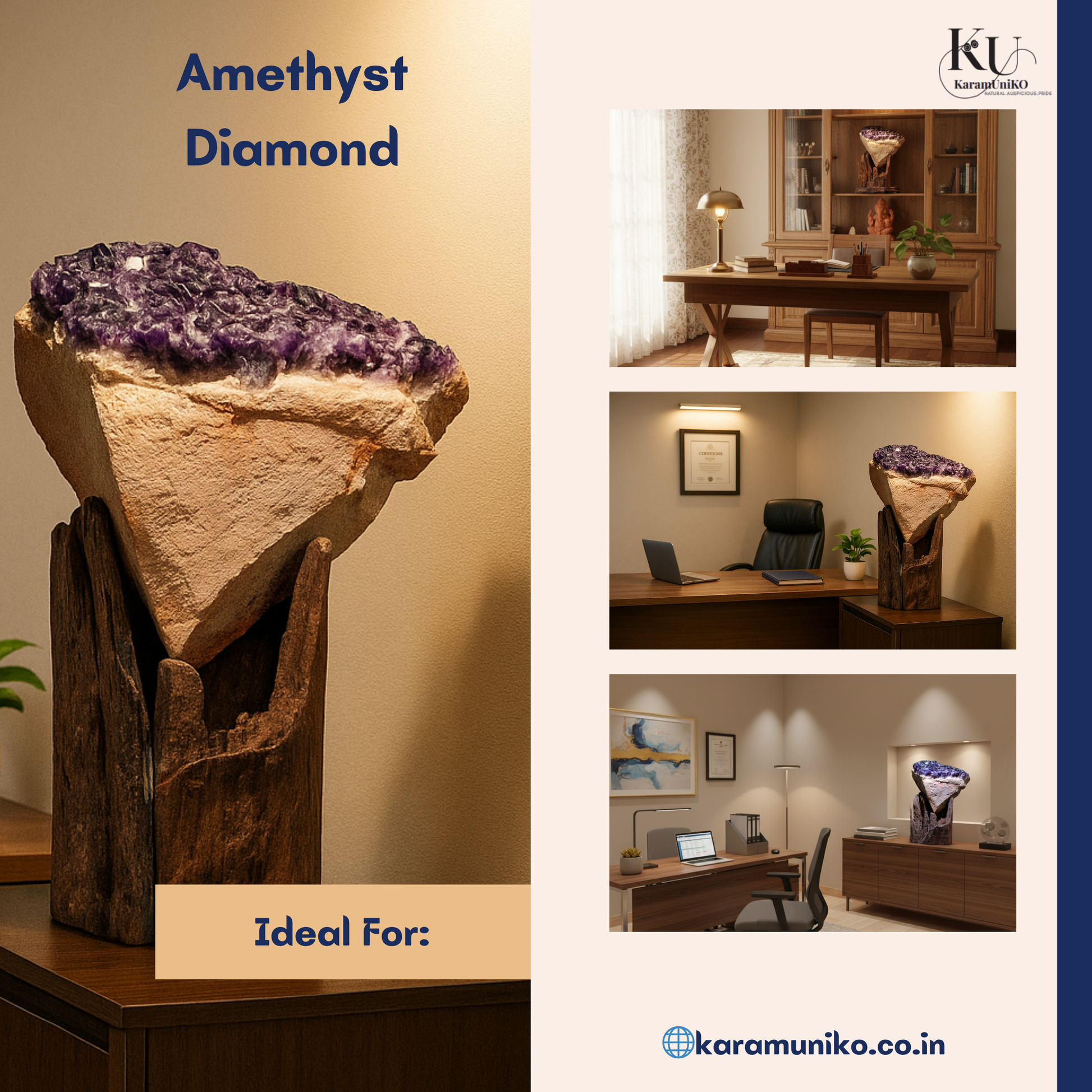 Natural Amethyst Crystals: Known for promoting peace, intuition, and stress relief.