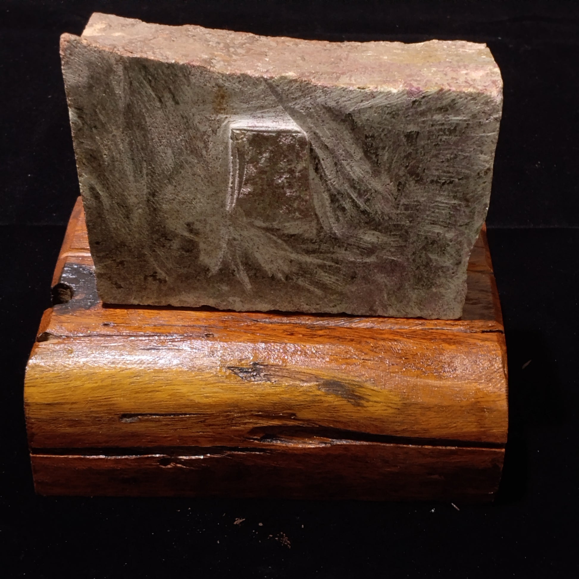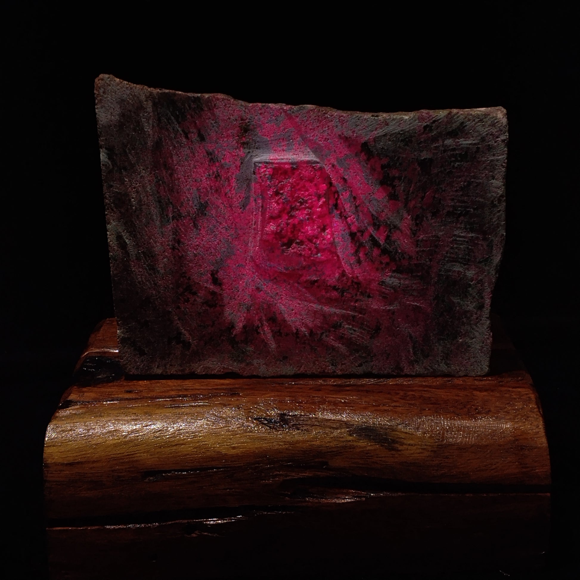 Heart of the Earth: Rubizoisite Matrix on Polished Wood Base