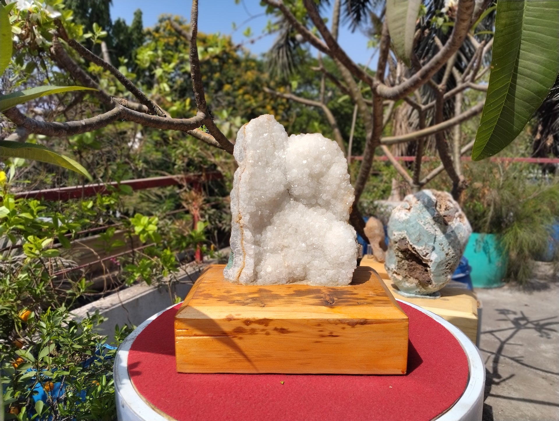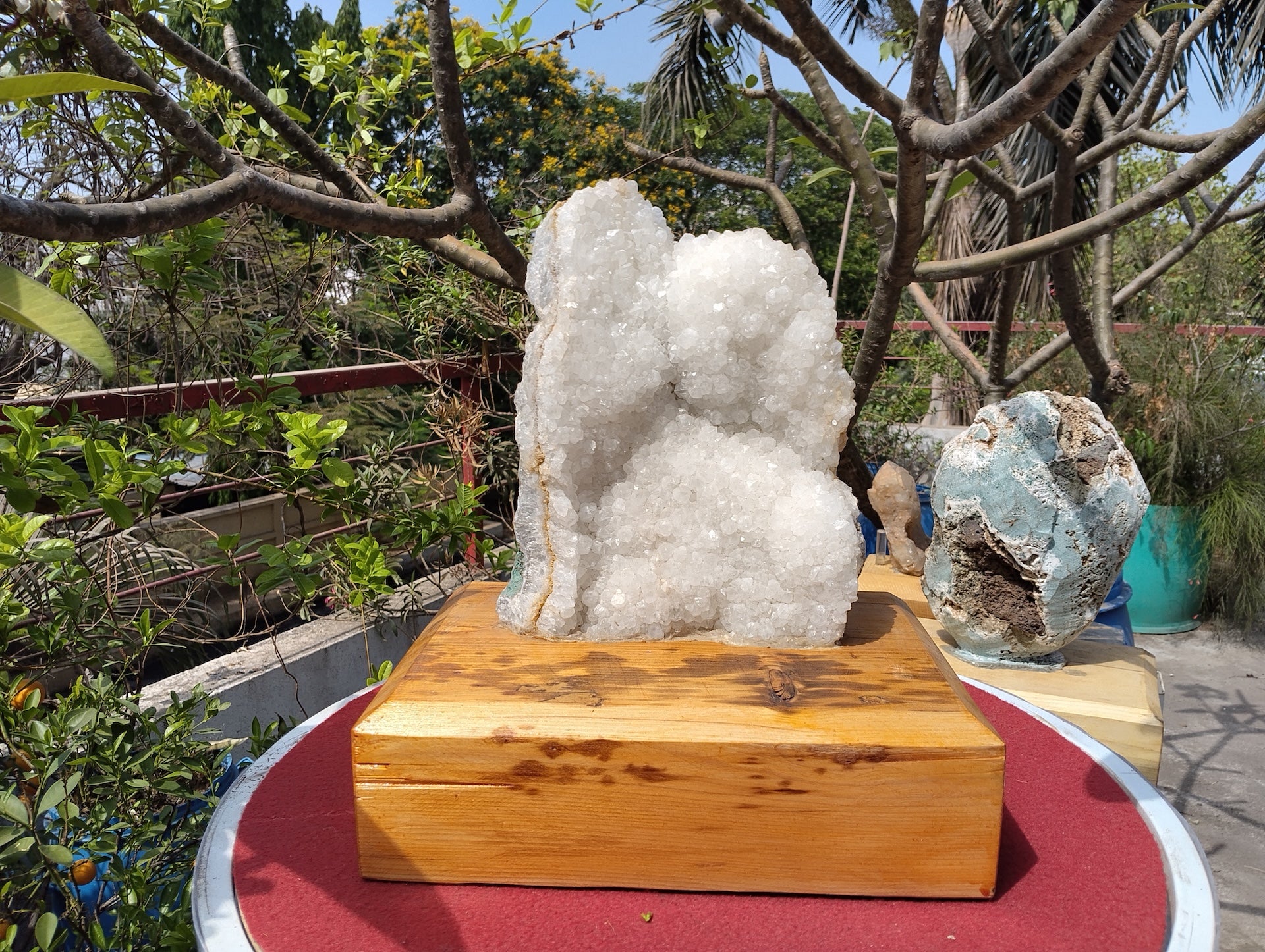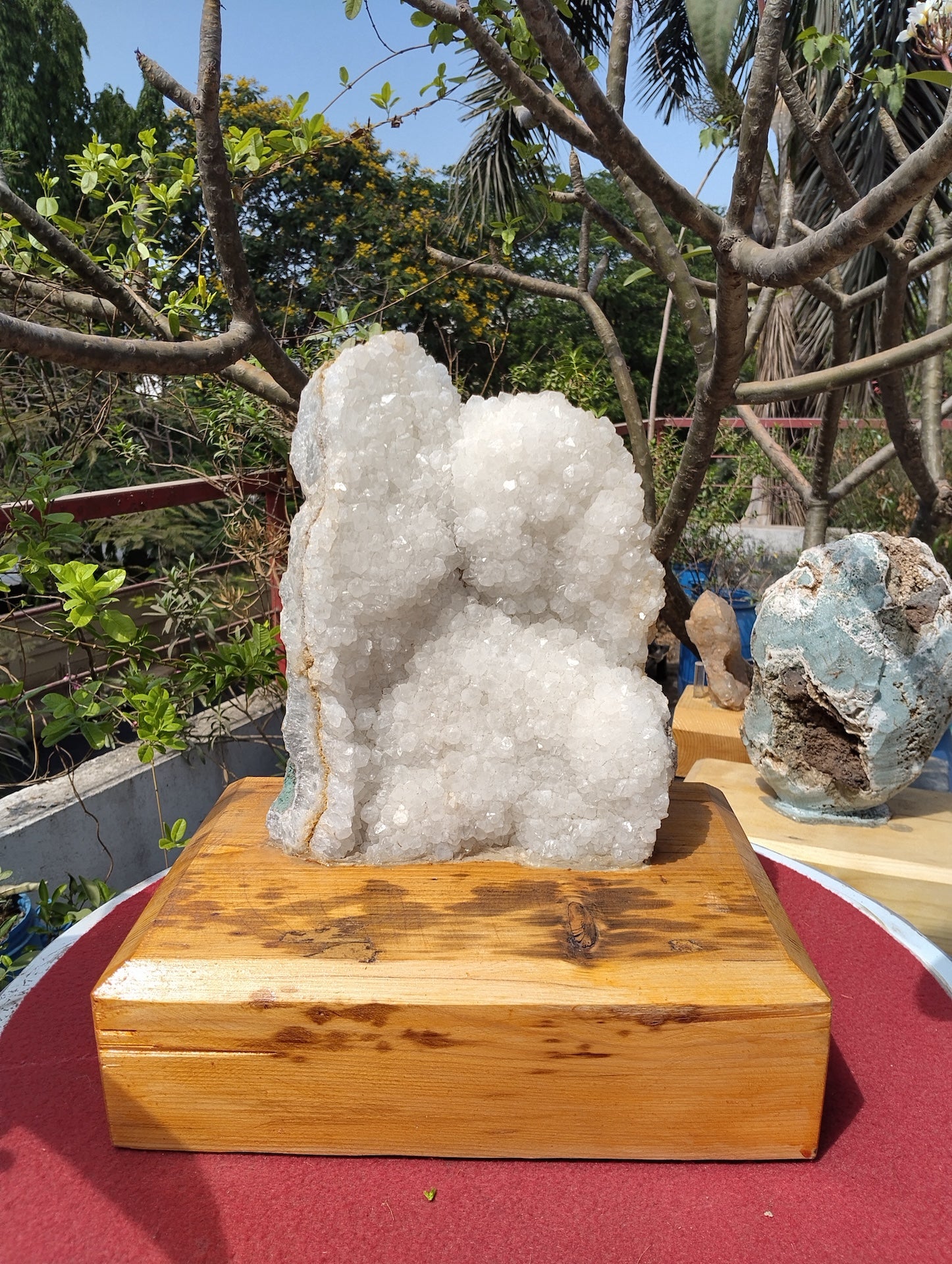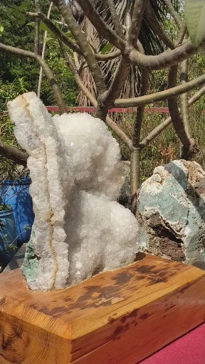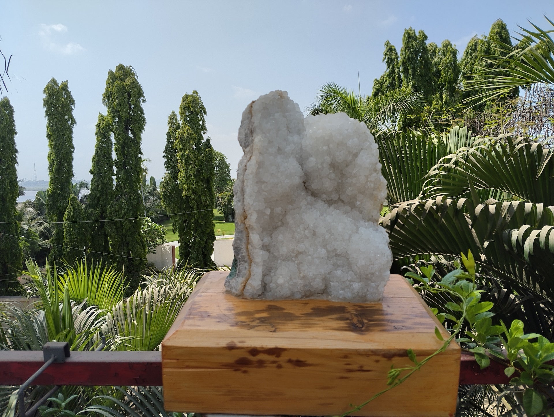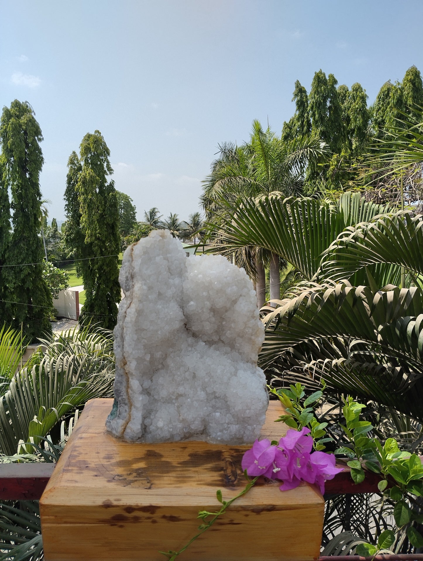 Apophyllite is known for its high-vibrational energy that enhances clarity, intuition, and emotional healing, while Quartz amplifies positivity and purifies the surroundings. Together, they create a powerful synergy of peace, protection, and balance, making this crystal formation an ideal choice for spiritual practitioners, collectors, and interior décor enthusiasts.