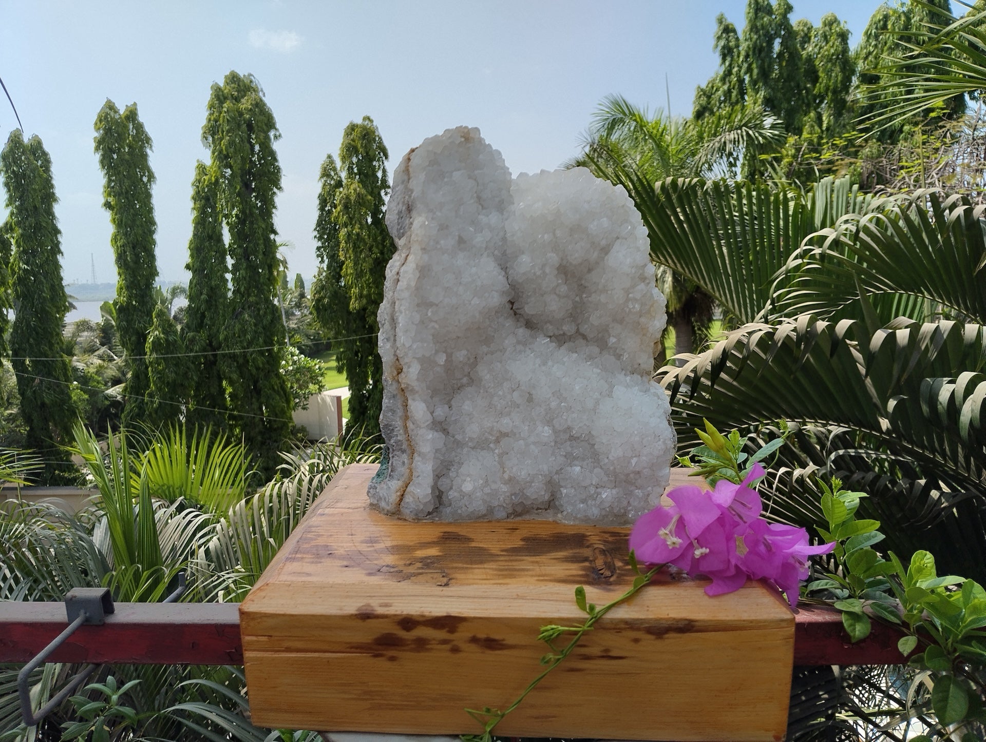 ? Natural & Untouched: A 100% authentic Apophyllite Quartz Geode in its raw, natural form.