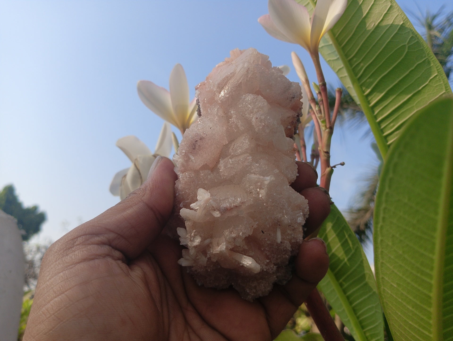 Bring home the serene charm of nature with Rose Frost, a naturally formed cluster of Apophyllite and Stilbite that looks like a delicate frozen flower. Its soft pink and white tones exude calmness, while its organic, flower-like structure adds a touch of elegance to any space.