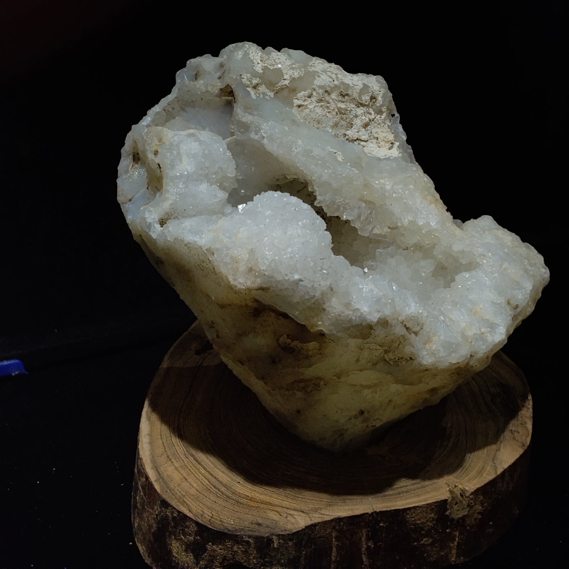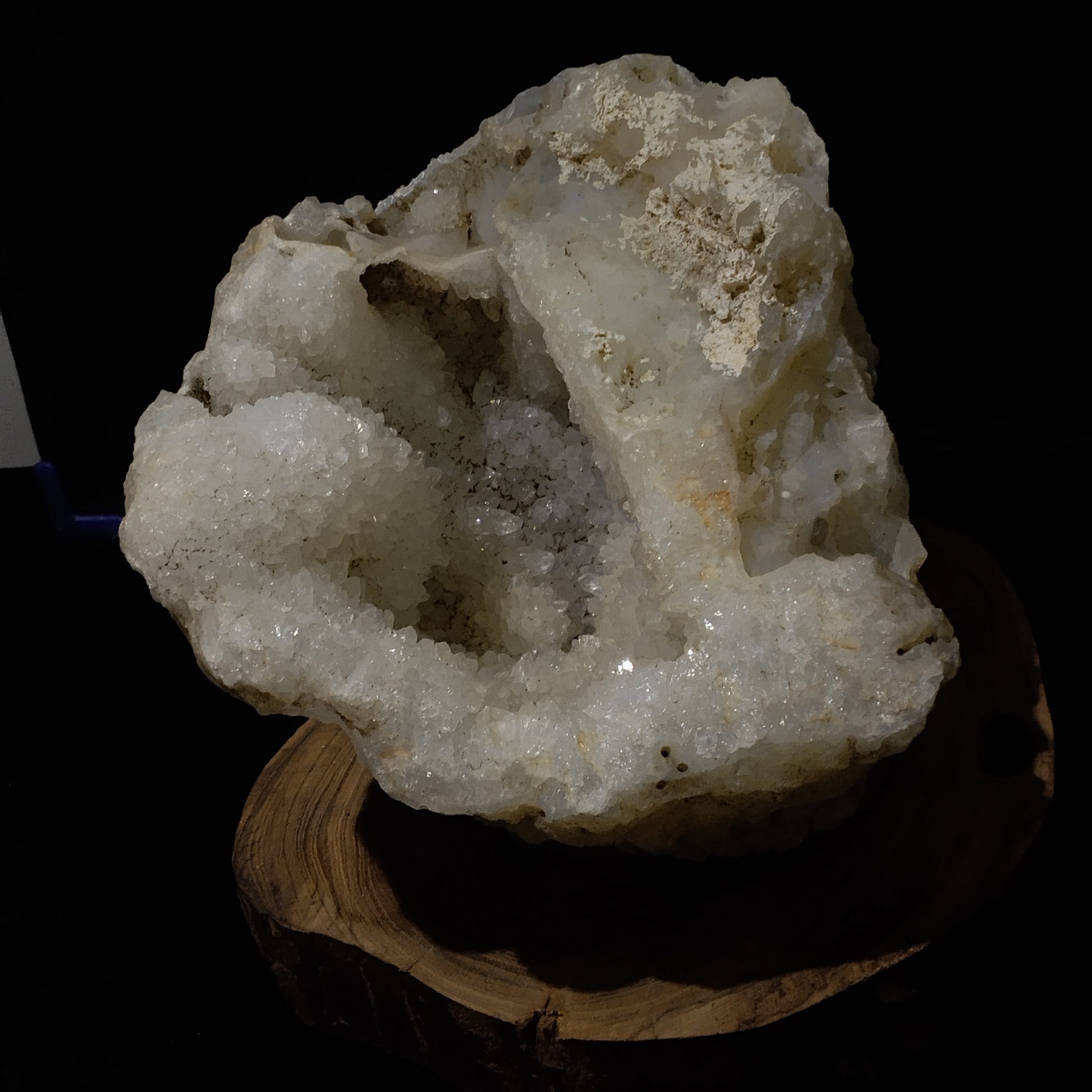 Sanctum Light: Quartz Geode on Polished Wood Base