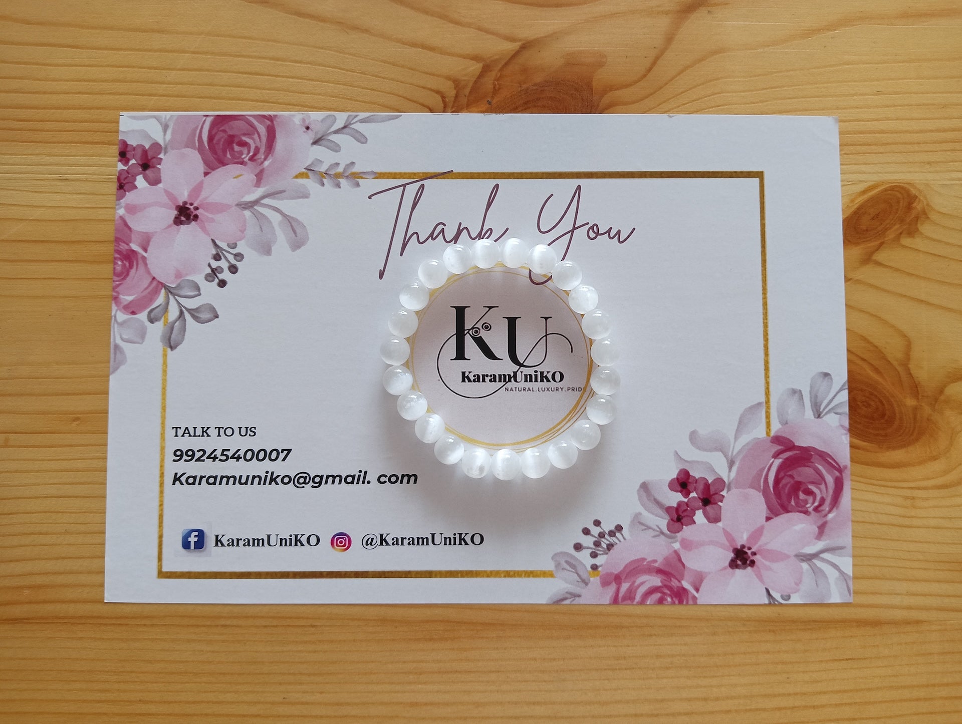 Wear this Selenite Bracelet daily to cleanse your aura, enhance intuition, and maintain a peaceful state of mind. A perfect companion for meditation, energy healing, or simply embracing positivity.