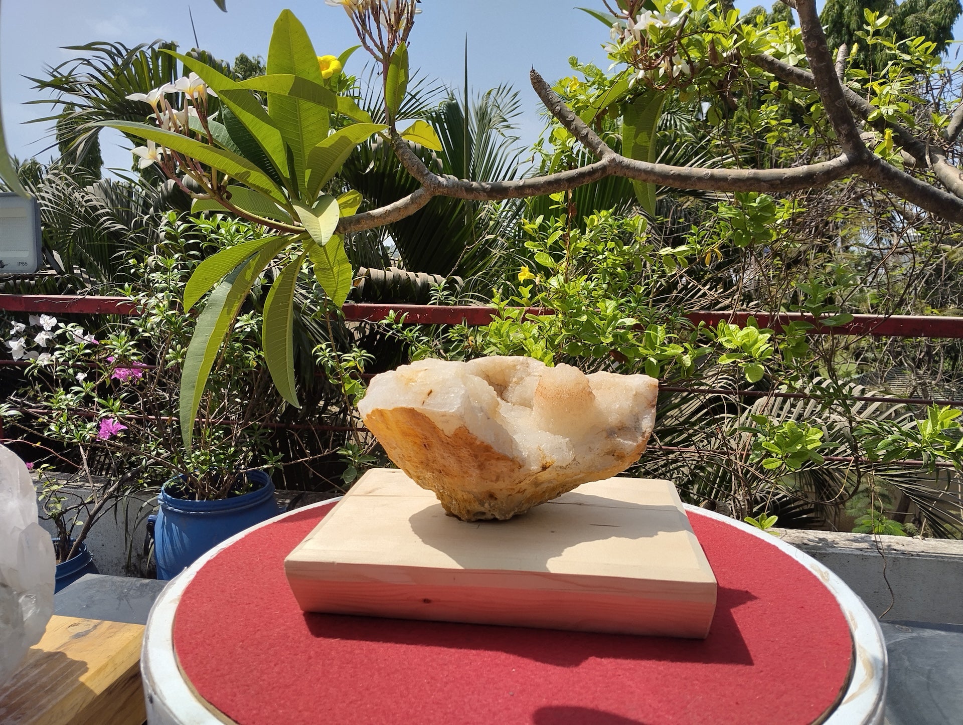 Measuring H-5.6" x W-7" x L-10" and weighing 7.105 KG, this piece is not man-made—it’s a pure creation of nature, where divine form meets raw crystal elegance. The gleaming Quartz, embraced by its earthy matrix, radiates serene strength and grounding vibrations, perfect for elevating any spiritual space, meditation altar, or collector’s showcase.