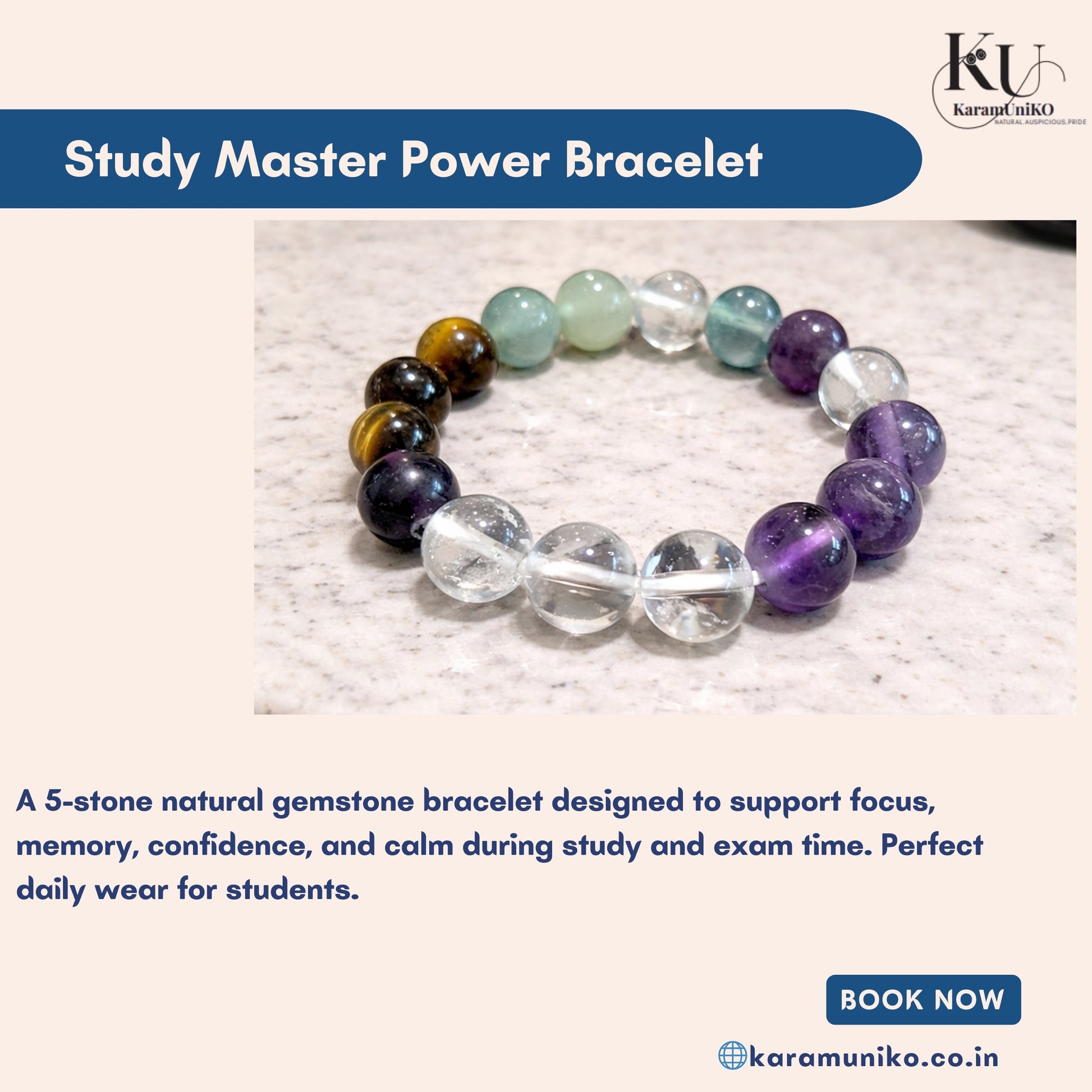 Five stones. One goal. Better focus, calm mind, strong confidence, and protected energy—Study Master Power Bracelet is your daily companion for focused and fearless learning.