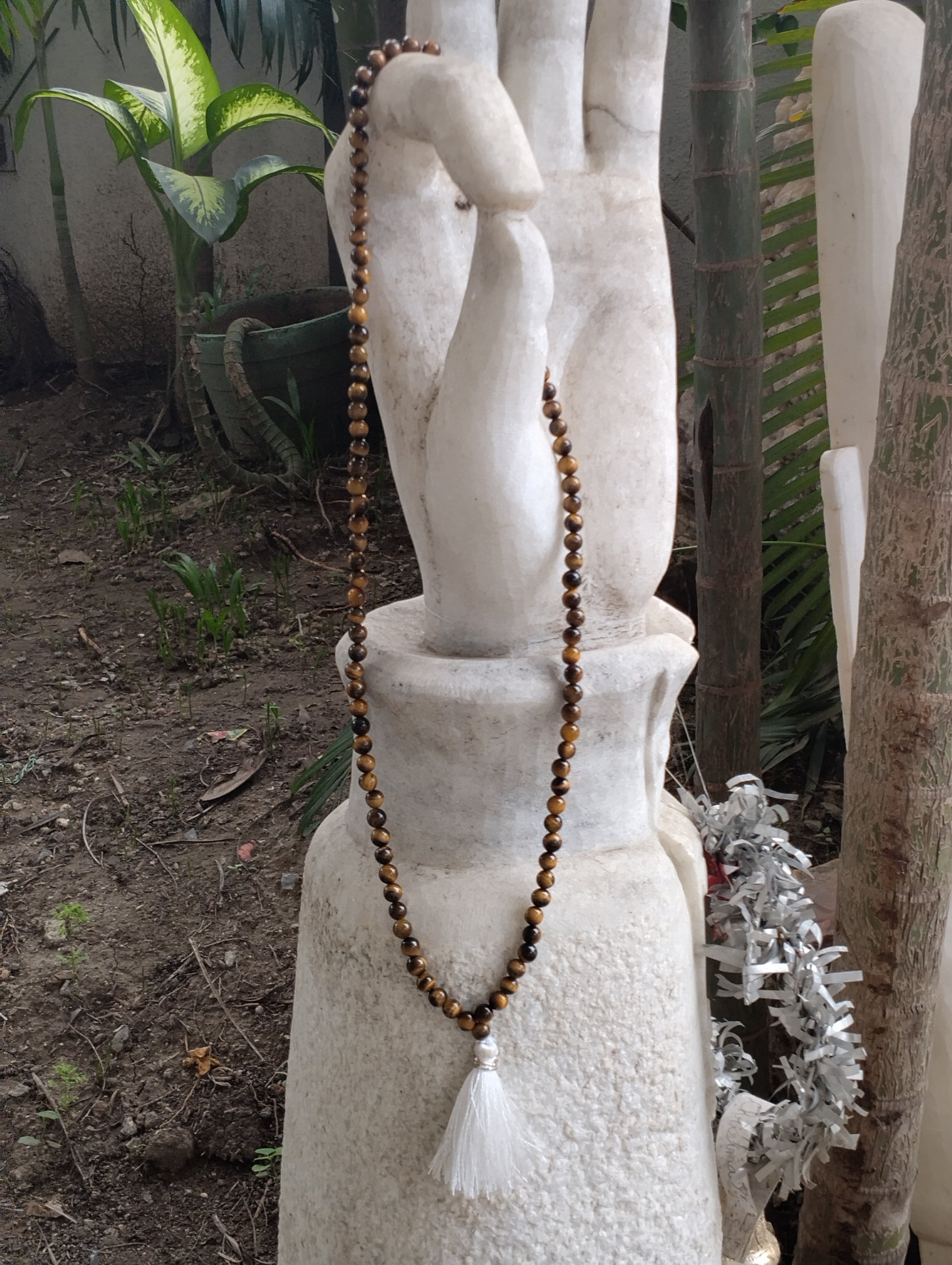 Beads: 108 round Tiger Eye beads (approx. 8mm each)