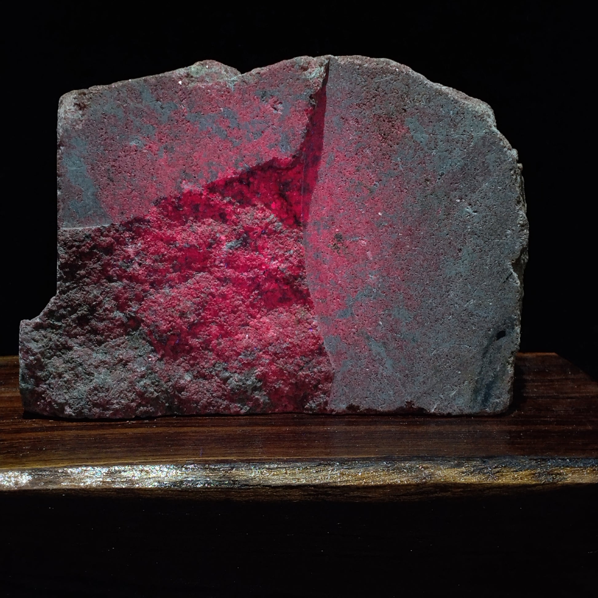 Vital Bloom: Ruby in Zoisite (Rubizosite) on Polished Wood Base