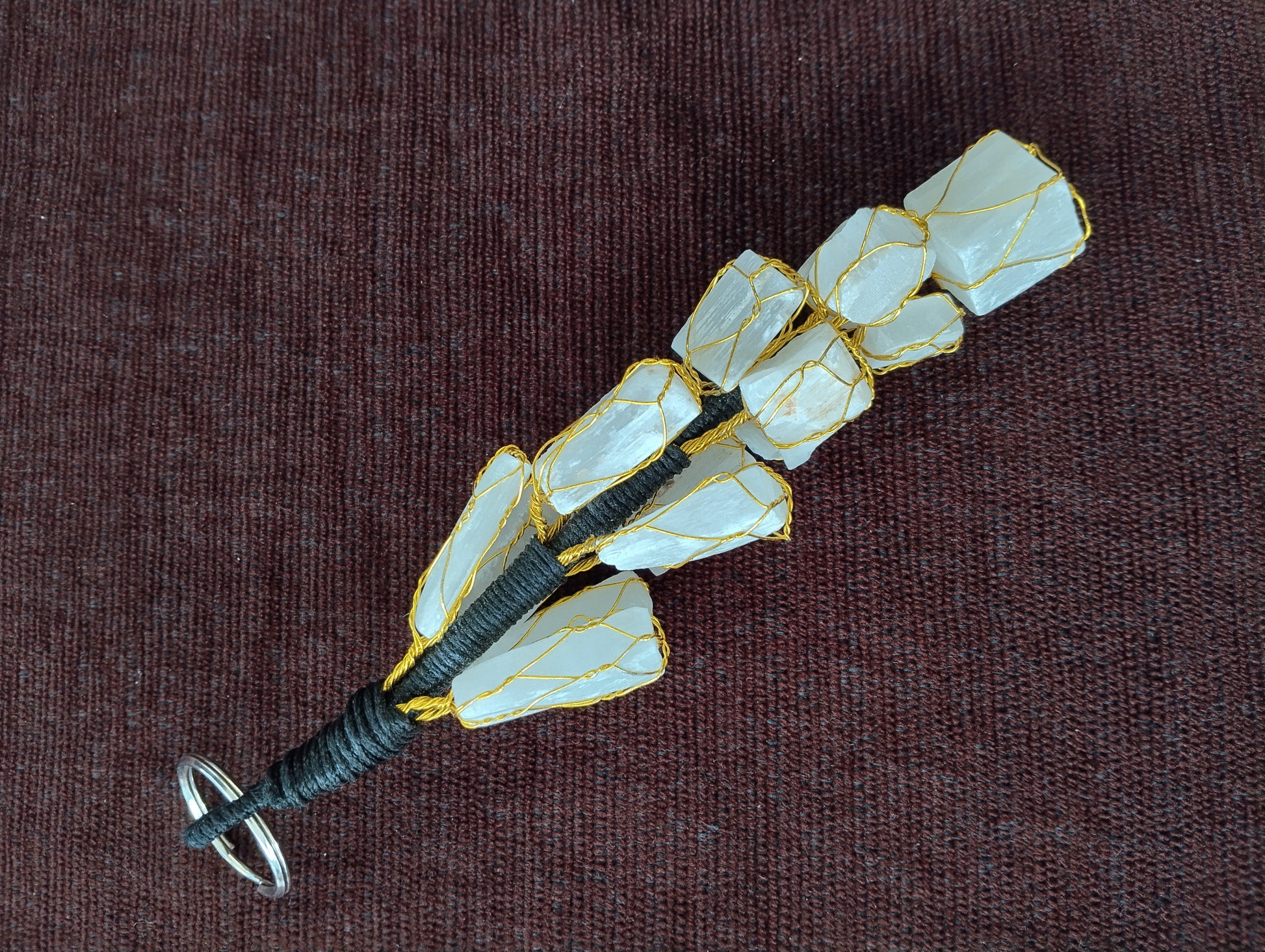 Elevate any space with this luminous Wire-Wrapped Selenite Hanging Ornament—a stunning fusion of natural elegance and metaphysical charm. Each piece features raw, translucent selenite crystals wrapped meticulously in shimmering gold-toned wire, arranged into a sculptural, wand-like design perfect for hanging in windows, meditation spaces, or sacred corners.